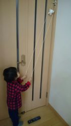 こでこの誕生日プレゼントに、 ジージから小黒三郎の登り人形を貰いました。 最初かなり勢い良く引っ張って遊ぶので、 どこに引っ掛けるか悩んだのですが、 ドアの部分に引っ掛けられる場所があったので、 目に見えるこの場所に置いたら、 気付いた時に遊... -