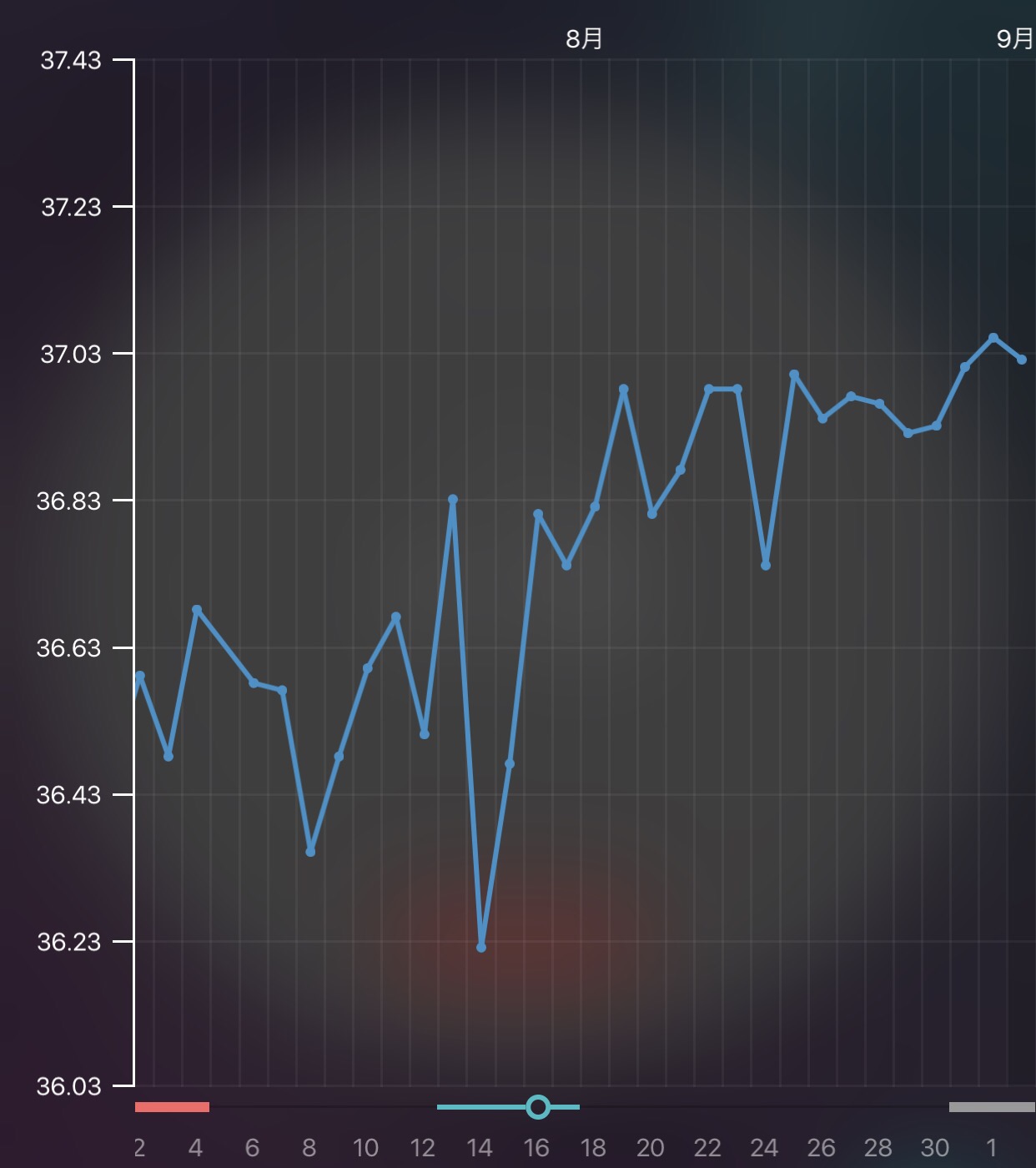 個人差があるようですが、大体0.2度くらい下がるそうで、私の場合も基礎体温が下がった前日が36.98度、ガクッと下がった日が36.74度、次の日が37.00度と、表にするとかなり分かりやすい状態になりました。